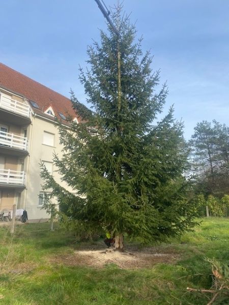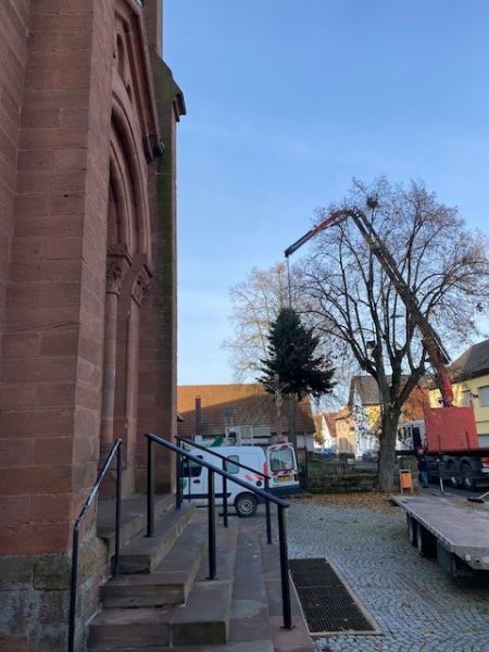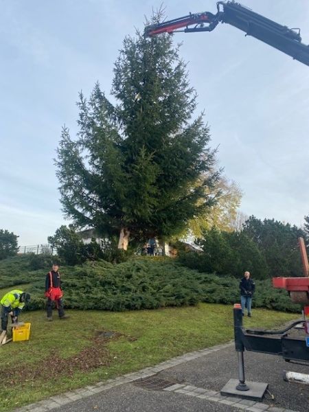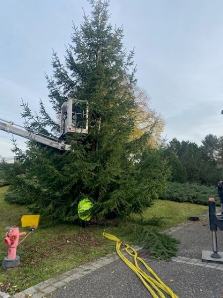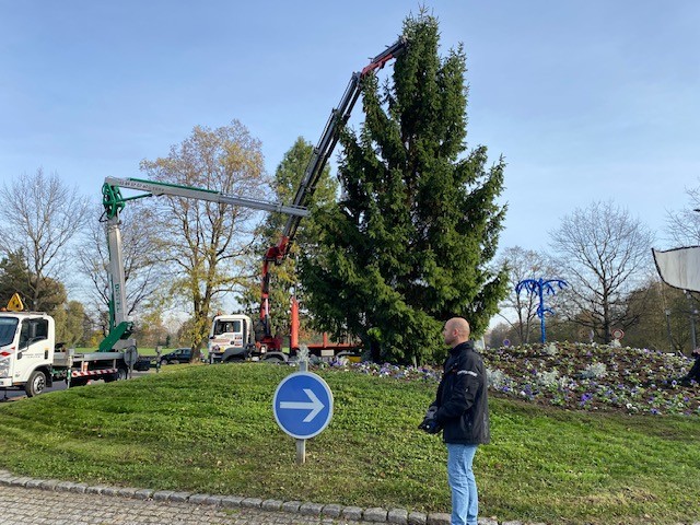 Mise en place des sapins, sous l'oeil attentif notamment des enfants de la Petite Crèche "Les P’tits Loups" !