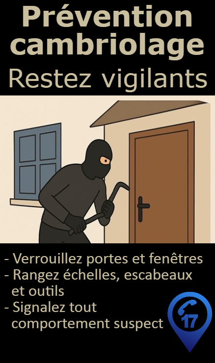 - IMPORTANT : Rentrez et sécurisez échelles, outils et matériels qui pourraient servir aux cambrioleurs