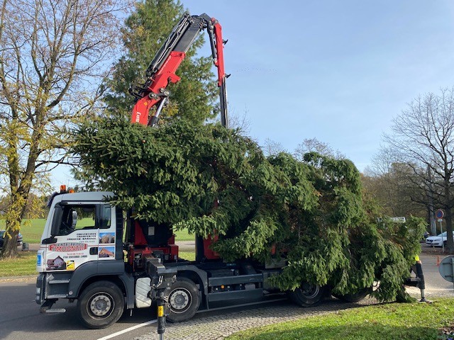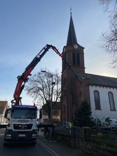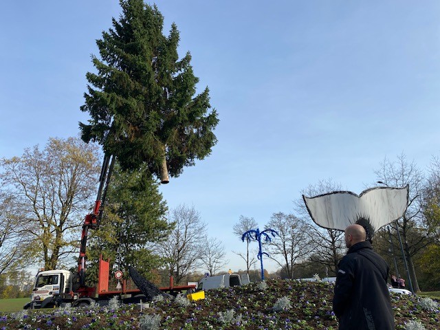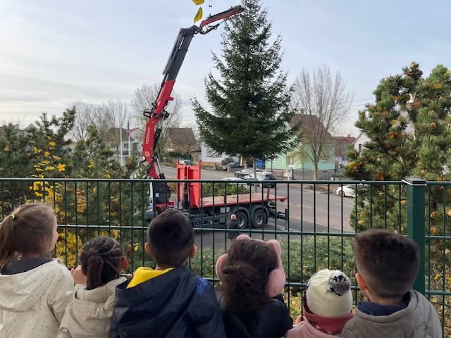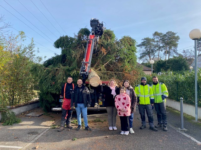 Mise en place des sapins, sous l'oeil attentif notamment des enfants de la Petite Crèche "Les P’tits Loups" !